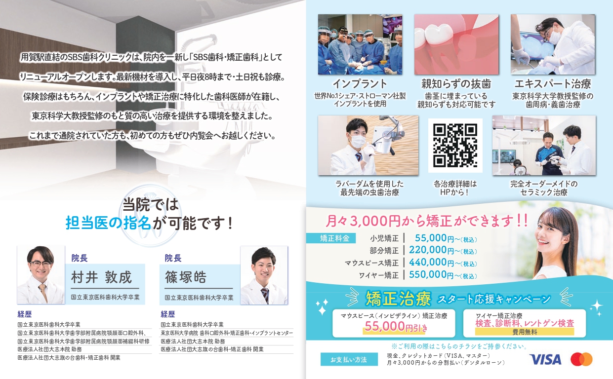 あわせて、医院名を 「SBS歯科クリニック」から「SBS歯科・矯正歯科」へ名称変更いたします。